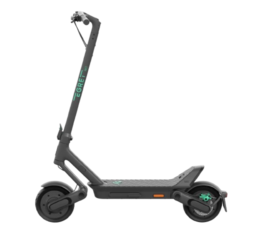 Model Egret Ey! 1 nabízí parametry výkonu, které ho řadí mezi nejvýkonnější městské e-koloběžky ve své kategorii. Nominální výkon 500 W v kombinaci se špičkovým výkonem 1 512 W přináší dynamickou jízdu, rychlé rozjezdy a dostatek síly i při jízdě do mírných kopců. Točivý moment 40 Nm patří mezi nejvyšší v dané třídě a pro výrazné zrychlení je k dispozici také sportovní režim Sport či extra výkonný režim Extreme. Energii dodává vysokokapacitní baterie 46,8 V / 14,5 Ah (678 Wh), která zajišťuje dojezd až 65 km, což je ve městě více než dostatečné. Nabíjení trvá 7–8 hodin, takže stačí koloběžku připojit přes noc. Model nabízí také praktický pěší režim 6 km/h, vhodný při vedení koloběžky vedle sebe. Stabilitu výkonu doplňují 10″ bezdušové pneumatiky a také plné odpružení se zdvihem 61 mm, které umožňuje plynulou jízdu i v náročnějších městských podmínkách.