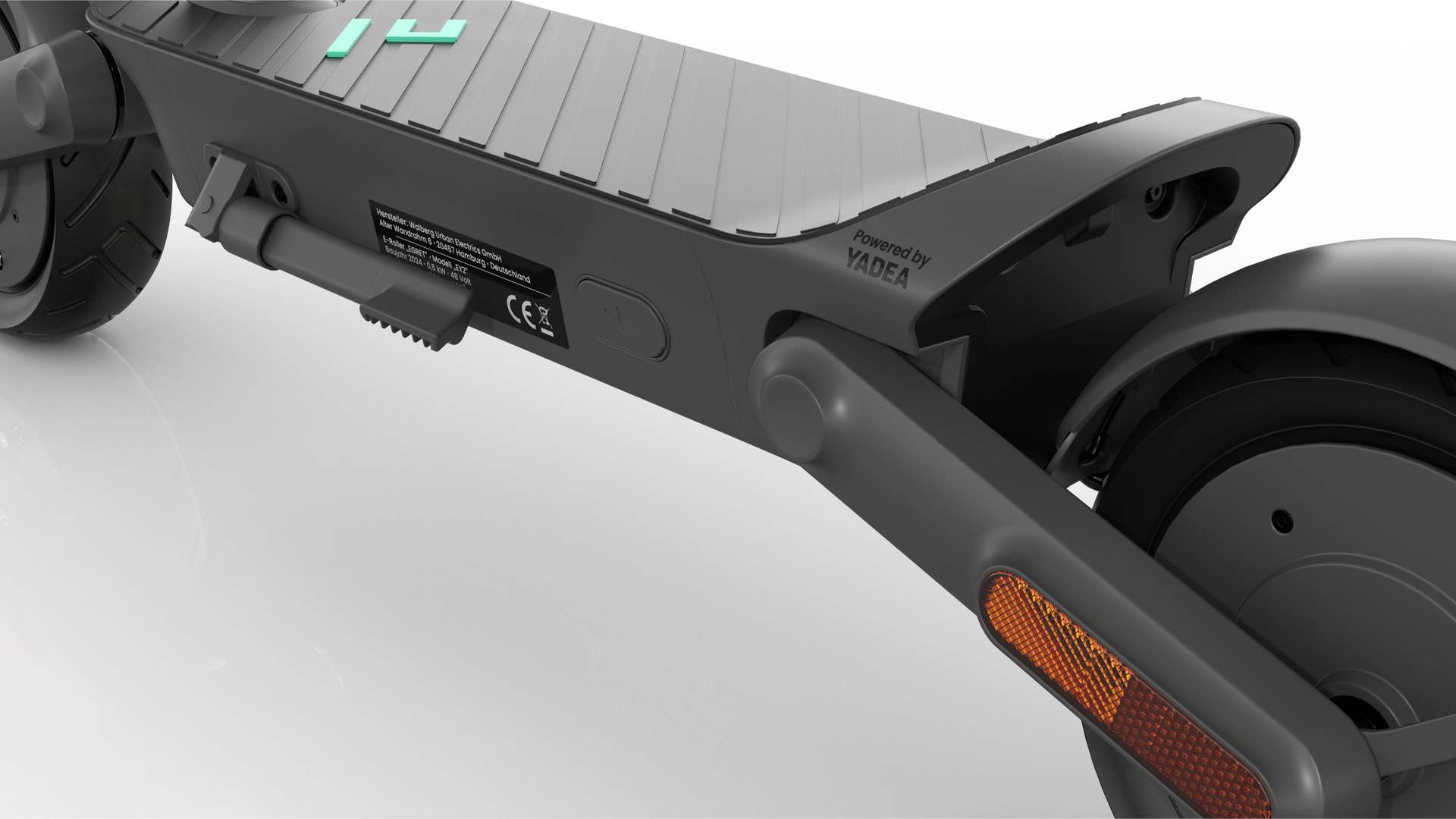 Egret Ey! 2 je vybavena výkonným zadním motorem s nominálním výkonem 500 W a špičkovým výkonem až 1188 W, což zajišťuje silnou akceleraci, svižnou jízdu do kopců i stabilní výkon při maximálním zákonném limitu 20 km/h. Motor je integrován v zadním náboji, takže pohon je tichý, bezúdržbový a okamžitě reaguje na přidání plynu pomocí palcové páčky. Koloběžka nabízí několik jízdních režimů, díky nimž si jezdec může přizpůsobit dynamiku jízdy podle podmínek a požadavků na úsporu energie. Srdcem systému je moderní baterie s parametry 47,45 V, 9,4 Ah a energetickou kapacitou 446 Wh, která poskytuje dojezd až 45 km, což je nadprůměr v této kategorii. Nabíjení trvá přibližně 7–8 hodin, což je ideální pro běžný cyklus – přes den jezdíte, v noci nabíjíte. Tuto efektivitu podporuje také elektronická brzda s rekuperací, která částečně vrací energii zpět do baterie. Ve spojení s velkými 10" bezdušovými pneumatikami a kvalitním odpružením je jízda nejen dynamická, ale i komfortní, stabilní a bezpečná. Egret Ey! 2 tak přináší skvělou rovnováhu mezi výkonem, efektivitou a komfortem, což z ní činí univerzální koloběžku vhodnou pro každodenní uživatele i nadšence, kteří hledají spolehlivý a výkonný stroj.