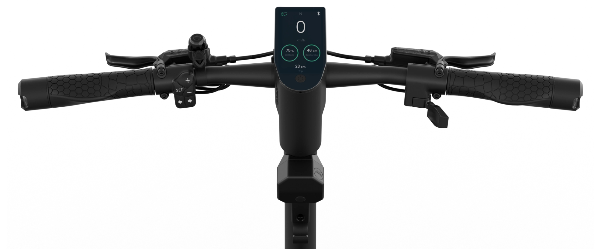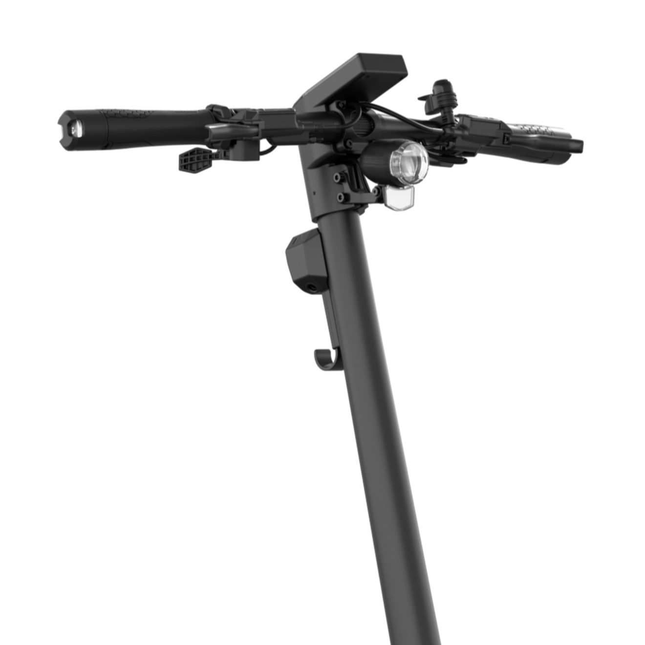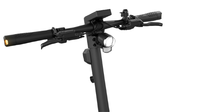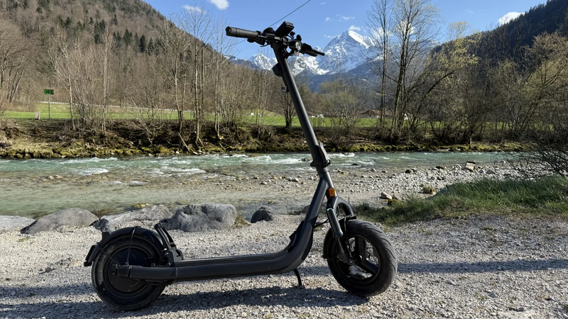 Egret GT vyniká svým robustním, ale zároveň moderním designem. V rozloženém stavu dosahuje rozměrů 136 × 67 × 128 cm, ve složeném pouze 136 × 60 cm, což výrazně usnadňuje manipulaci a skladování. Nášlap s velkorysými rozměry 17 × 46 cm poskytuje stabilní postoj a zároveň ukrývá rychle vyměnitelnou baterii, což je jedna z nejpraktičtějších funkcí tohoto modelu. Dvojité odpružení – přední olejová upside-down vidlice RST se zdvihem 5 cm a zadní nastavitelný tlumič – zajišťuje komfort i na nerovném povrchu. Koloběžka je vybavena 13" pneumatikami s ocelovou ochranou proti propíchnutí, které zvyšují stabilitu při vyšších rychlostech. Osvětlení je prémiové: přední LED OSRAM 80 lux, zadní LED světlo s brzdovým efektem a integrované směrovky vpředu i vzadu. Ovládání doplňuje 3,5" TFT displej, který přehledně zobrazuje rychlost, kapacitu baterie, jízdní režim či směrovky. Mezi užitečné funkce patří také NFC odemykání, elektronický alarm, imobilizér a kompatibilita s Apple Find My, což výrazně snižuje riziko krádeže. Voděodolnost IPX5 pro koloběžku a IPX7 pro baterii doplňuje mimořádnou odolnost celého systému.