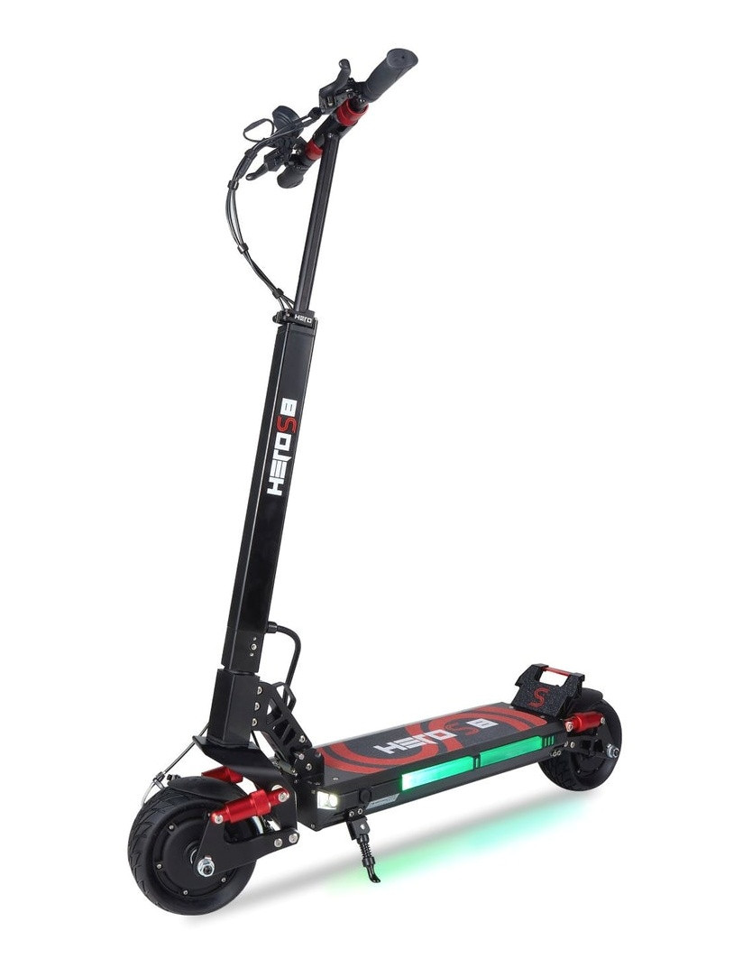Hero S8 je model určený primárně do města, ale v případě potřeby zvládne díky odpružení vpředu a vzadu i lehčí terén. Její maximální nosnost je 120 kg při váze koloběžky jen 27 kg je ohromující. S dojezdem přibližně 45 km (při ideálních podmínkách) je určena zejména na středně dlouhé trasy městem, ale nezalekne se ani delšího výletu o víkendu. S výkonem 800 W (špičkový 1200 W) se řadí mezi středně výkonné koloběžky do města a zvládne i menší kopec. Plná 8 palcová kola vás nikdy nepřekvapí během výletu defektem. Rovněž vás potěší svým zajímavým barevným provedením a vícebarevným podsvícením. Samozřejmostí je také přední a zadní osvětlení, včetně brzdového světla. S maximálnou rychlostí 40 km/h vám už nezbývá nic jiného, než se vydat na svou dobrodružnou cestu.