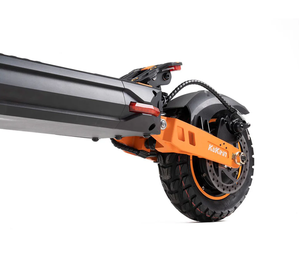 Srdcem KuKirin G2 Max je výkonný 1000W bezkartáčový motor s dvojitou strukturou chlazení, který zajišťuje plynulý chod a dlouhou životnost. Díky němu koloběžka dosahuje maximální rychlosti 55 km/h, což oceníte nejen při rychlém přesunu městem, ale i při dynamické jízdě v terénu. Baterie s kapacitou 48 V / 20 Ah poskytuje dojezd až 80 km při jízdě ve druhém rychlostním stupni bez protivětru, což ji řadí mezi nejvýkonnější koloběžky ve své kategorii. S takovým dojezdem zvládnete celý pracovní týden dojíždění bez nutnosti denního nabíjení. Koloběžka má tři jízdní režimy, díky kterým lze přizpůsobit výkon podle potřeby – od úsporné jízdy po maximální výkon. Spojení silného motoru, velké kapacity baterie a kvalitního tlumení činí z KuKirin G2 Max ideální řešení pro ty, kteří hledají nejen rychlost, ale i dlouhodobou spolehlivost.