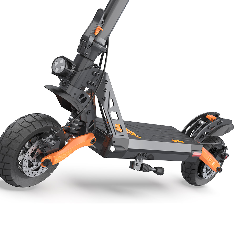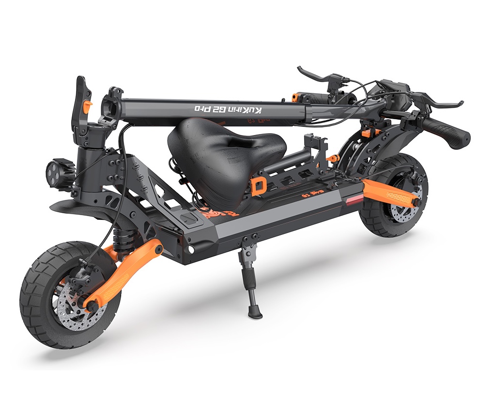 KuKirin G2 Pro zaujme na první pohled svým sportovním designem, který kombinuje moderní linie s praktickými detaily. Je vybavena nastavitelnými řídítky, skládacím mechanismem pro snadné uskladnění a odnímatelným sedadlem, které nabízí flexibilitu podle preferencí jezdce. Komfort jízdy zajišťuje přední a zadní pružinové odpružení se 4-ramenným systémem, které částečně eliminuje nerovnosti silnic a umožňuje jízdu i po méně kvalitním povrchu. O bezpečné zastavení se starají 120 mm přední i zadní kotoučové brzdy, které poskytují dostatečný brzdný výkon i při vyšších rychlostech. Významnou výhodou je také osvětlení – koloběžka je vybavena až šesti světly včetně předního LED světlometu, bočních světel a zadního brzdového světla. K dispozici jsou rovněž směrovky, klakson a tempomat pro pohodlnější jízdu. Barevný LCD displej zobrazuje všechny důležité údaje, jako je rychlost, stav baterie či najeté kilometry. Koloběžka disponuje také stupněm ochrany IP54, takže je odolná proti prachu a mírnému dešti, což zvyšuje její životnost a univerzálnost použití.