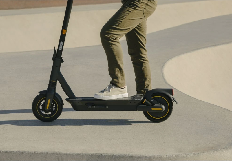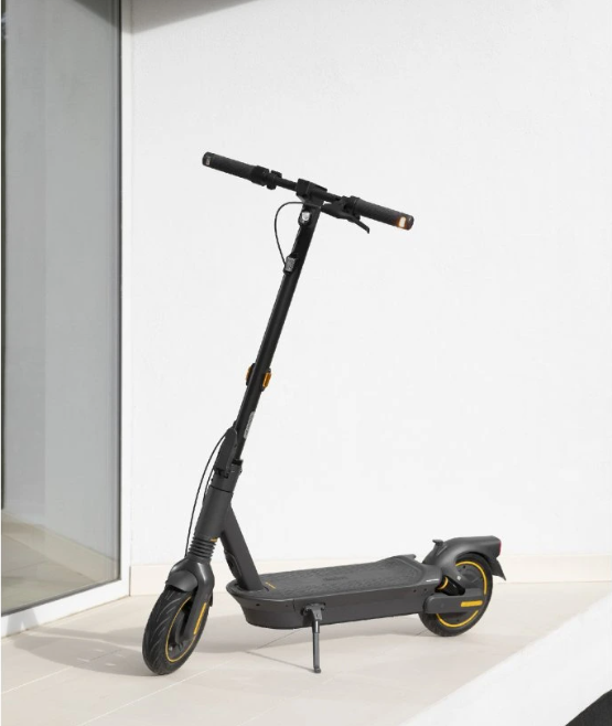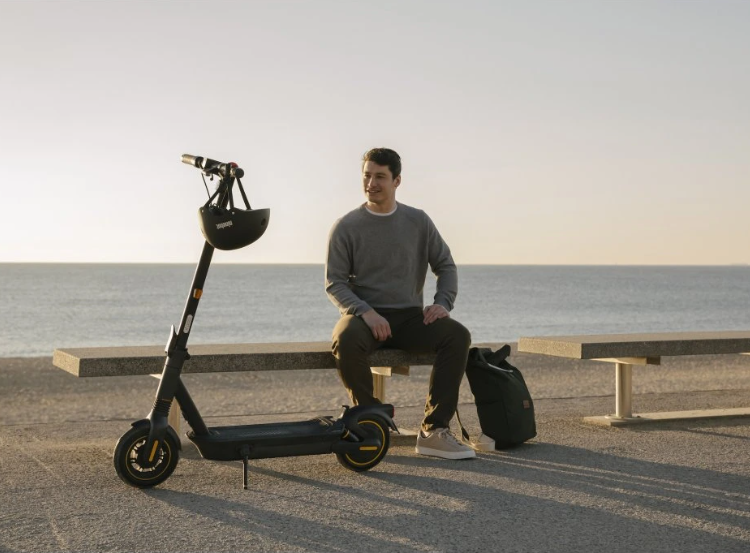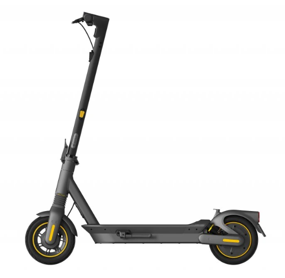 Prémiová elektrokoloběžka Ninebot MAX G2 E s dojezdem až 70 km, výkonem 450/900 W, 10" samoopravnými pneumatikami, hydraulickým odpružením, směrovkami, systémem TCS a nosností 120 kg.