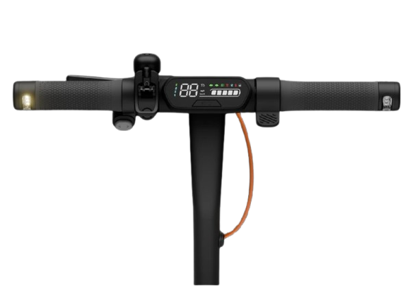 Design modelu Ninebot KickScooter E2 Plus E II vychází z minimalistických linií doplněných o robustní ocelovou konstrukci. Ta využívá automobilový materiál SPFH590, který je známý výborným poměrem pevnosti a pružnosti, což zvyšuje odolnost koloběžky při každodenní zátěži. Praktickým prvkem je možnost jednoduchého složení na kompaktní rozměry 1081 × 475 × 548 mm, což umožňuje přenášení v rukou, uložení v autě nebo zasunutí pod pracovní stůl. V rozloženém stavu má koloběžka rozměry 1081 × 475 × 1177 mm, díky čemuž nabízí dostatek prostoru a stabilitu během jízdy. Na řídítkách se nachází přehledný 2,8" LED displej, který okamžitě zobrazuje rychlost, režim jízdy, stav baterie a další důležité informace. Pro zvýšení komfortu je Ninebot E2 Plus E II vybavena předním pružinovým odpružením se zdvihem přibližně 27 mm, které tlumí vibrace z nerovností a zlepšuje celkovou stabilitu. Nechybí směrová světla na přední i zadní straně, což je v této cenové kategorii mimořádně výjimečné. Přední osvětlení s výkonem 2,1 W má dosvit až 13,5 m, takže zvyšuje bezpečnost jízdy za šera či v noci. Dále zde najdeme kombinaci přední elektronické brzdy a zadní mechanické bubnové brzdy, které společně poskytují spolehlivé a plynulé brzdění. Bezúdržbové pneumatiky o velikosti 8,1" se vyznačují vysokou odolností a eliminují starosti s dofukováním či defekty. Moderní funkce doplňuje Bluetooth připojení s aplikací Segway-Ninebot, která umožňuje koloběžku uzamknout, aktualizovat firmware nebo sledovat stav jednotlivých komponentů.
