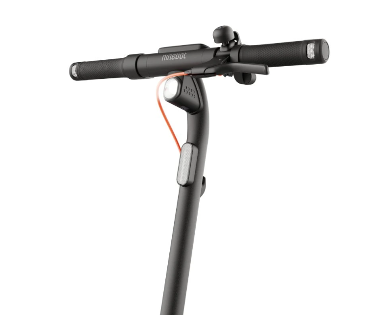 Ninebot KickScooter E2 Pro E – výkonná městská koloběžka s motorem o výkonu 350 W, špičkovým výkonem 750 W, rychlostí 25 km/h, dojezdem 35 km, velkými 10" pneumatikami, trakcí TCS, směrovkami, odolností IPX4/IPX6 a vynikající stabilitou.