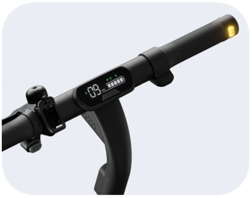 Design Ninebot KickScooter E2 Pro E vychází z filozofie moderního minimalismu, který kombinuje elegantní linie, funkčnost a důraz na odolnost. Koloběžka v rozloženém stavu měří 1168 × 540 × 1220 mm, což poskytuje stabilní jízdní pozici i pro vyšší uživatele. Po složení se dá zkomprimovat na rozměry 1168 × 538 × 565 mm, díky čemuž je vhodná pro přenášení v autě, MHD či uložení v kanceláři. Celkovou hmotnost 18,8 kg lze sice zařadit mezi vyšší hodnoty v rámci modelové řady E2, přináší to však výhodu pevně působícího rámu, lepší stability ve vyšších rychlostech a efektivnějšího přenosu výkonu ze zadního motoru. Dominantním prvkem designu je velký, přehledný 2,8" LED displej, který neustále informuje o rychlosti, stavu baterie, jízdním režimu či aktivovaných funkcích. Výbava zaujme především integrovanými směrovkami vpředu i vzadu, což je u koloběžek v této kategorii stále raritou a velkým přínosem pro bezpečnost. Přední LED světlo s výkonem 2,1 W má dosvit až 13,5 metru, takže jezdec má výborný přehled i během večerních jízd. Zadní světlo automaticky reaguje na brzdění. Koloběžka je vybavena bezdušovými 10" pneumatikami, které výrazně zlepšují komfort ve srovnání s menšími koly a zároveň si zachovávají vysokou odolnost vůči propíchnutí. Velkým plusem je také TCS – trakční kontrolní systém, který zabraňuje prokluzování kol na mokrém nebo sypkém povrchu, čímž výrazně zlepšuje bezpečnost a jízdní vlastnosti. E2 Pro E podporuje také propojení přes Bluetooth s mobilní aplikací, kde můžeš sledovat stav baterie, aktualizovat firmware či aktivovat bezpečnostní funkce.