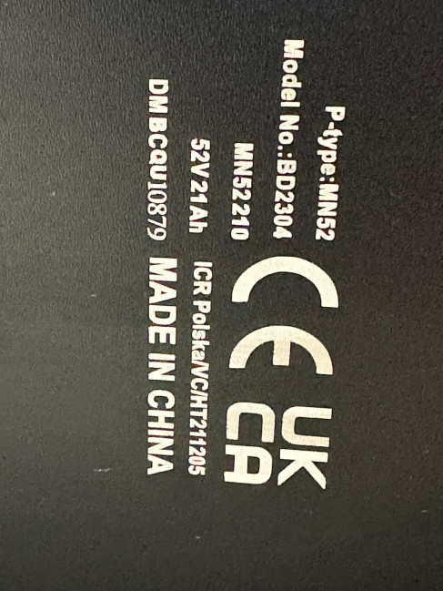 | Napětí baterie | 52 V | ||||