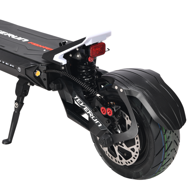 Výkon je oblastí, ve které Teverun Fighter Eleven Plus doslova dominuje. Dva bezkartáčové motory o výkonu 2 × 1600 W zajišťují okamžitou akceleraci a dostatek síly i při jízdě do kopce. Maximální výkon 4900 W umožňuje zvládat prudká stoupání a náročný terén bez ztráty dynamiky. Maximální rychlost až 85 km/h činí z této koloběžky jednu z nejrychlejších ve své kategorii. Baterie s kapacitou 60 V / 35 Ah / 2100 Wh je navržena pro dlouhé trasy a vysoké zatížení. V reálných podmínkách poskytuje velmi dobrý poměr mezi výkonem a spotřebou energie. Dojezd až 120 km je dosažitelný při úsporné jízdě, přičemž i při dynamickém stylu zůstává nadprůměrný. Efektivní řízení energie a kvalitní elektronika zajišťují stabilní výkon po celou dobu jízdy bez výrazného poklesu výkonu při nižším stavu baterie.