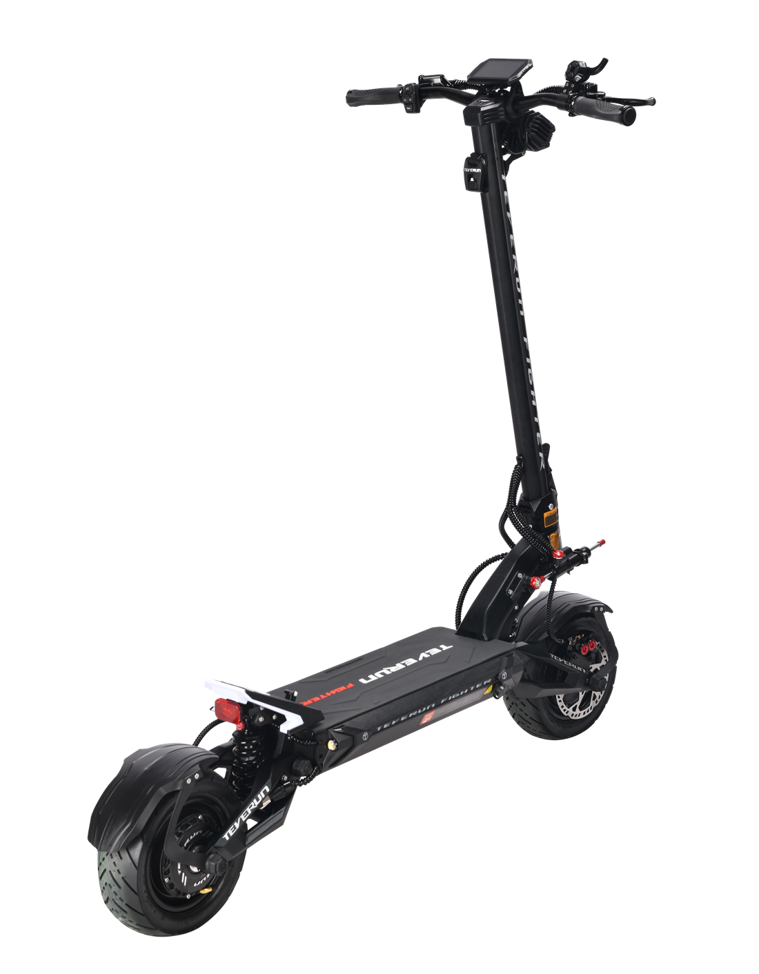 Výkonná elektrická koloběžka se 2×1600 W motory, rychlostí 85 km/h a dojezdem až 120 km. Prémiová výbava, hydraulické brzdy a maximální stabilita.