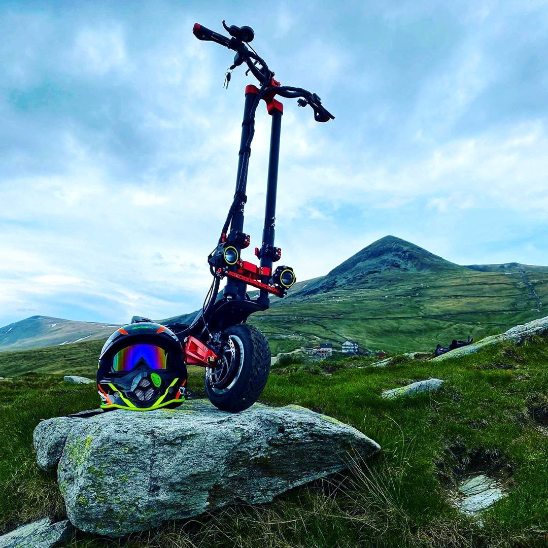Začneme tím, že tato bestie váži 54 kg. To není něco, co by měl běžný člověk chuť zvednout a nést do šestého poschodí nebo byť jen po schodech do výtahu. Složená délka 142 cm, šířka přes 70 cm a výška 60 cm ji určitě nepředurčují na přepravu v kufru auta nebo v MHD. Pokud se vám ji i tak podaří do kufru dát, musíte počítat s tím, že už se vám do něj mnoho věcí nevejde. Je třeba se na ni dívat spíše jako na menší složitelnou motorku než na koloběžku. Co se však týče využití, tam vám svou nepraktičnost vrátí v plné parádě. Dojezd 150 km, maximální rychlost téměř 100 km/h, pohon 2x2 a výkon 6400 W vám totiž otevře úplně nové dimenze toho, co je na elektrické koloběžce vůbec možné. Zvládne každé stoupání, a to i v těžším terénu, a vaše výlety i mimo město naberou úplně jiný styl. Navíc nebudete nikoho rušit hlučným spalovacím motorem, ale pouze tichým bzučením výkonných elektromotorů a to bez emisí či kapajícího oleje.