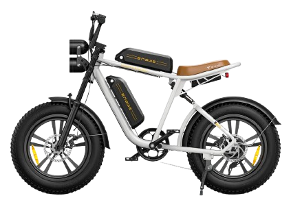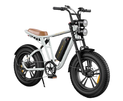 ENGWE M20 – výkonné elektrické kolo s motorem 750 W (špičkově 1000 W), baterií 48 V / 13 Ah (624 Wh), dojezdem 75–150 km, rychlostí 45 km/h, plným odpružením a fat pneumatikami 20×4.0. Ideální do města i do terénu.