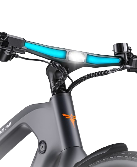 ENGWE N1 Pro upoutá pozornost už na první pohled – nejen futuristickým designem, ale i důrazem na praktičnost. Rám z uhlíkových vláken Toray T700 snižuje celkovou hmotnost na pouhých 19,5 kg, což je v této výkonnostní kategorii výjimečné. Kolo disponuje silničními pneumatikami 700 × 42C, které jsou ideální pro městské povrchy, kombinují nízký valivý odpor a vysokou stabilitu. Vpředu i vzadu jsou hydraulické kotoučové brzdy s 160 mm kotouči, které zajišťují spolehlivé a rychlé zastavení i při vyšší rychlosti nebo v nepříznivých povětrnostních podmínkách. Komfort jízdy doplňuje 7stupňová přehazovačka Shimano, umožňující přizpůsobit jízdu různým typům terénu. Součástí výbavy je barevný LED displej, který zobrazuje aktuální rychlost, úroveň asistence, stav baterie a další údaje. Kolo obsahuje automatické přední RGB světlo, které se přizpůsobuje okolnímu osvětlení, a zadní solární světlo, fungující zároveň jako brzdové. Balení obsahuje nabíječku 42 V / 2 A, stojan, blatníky, nářadí a pedály – kolo je po vybalení okamžitě připraveno k provozu.