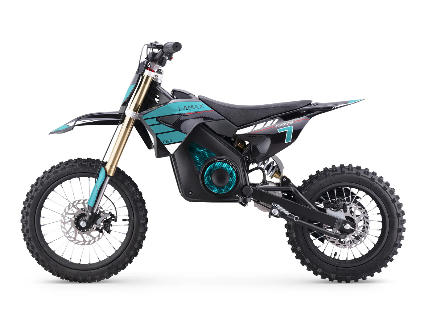 Elektrická dětská motorka LAMAX eJumper DB70 – assembled s motorem 1400 W, baterií 48 V / 13 Ah a maximální rychlostí 42 km/h. Robustní ocelový rám, samobrzdiací systém a LCD indikátor baterie zaručují bezpečnou a pohodlnou jízdu pro děti od 7 do 15 let.