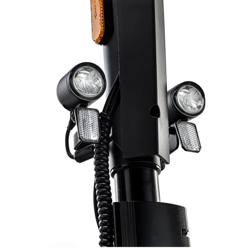 Při rychlosti až 72 km/h a výkonu 7200 W je bezpečnost naprosto klíčová. MIA Four X4 proto využívá kombinaci mechanické stability a elektronické ochrany. Pevný rám s nízkým těžištěm a širokým postojem snižuje riziko převrácení, zatímco hydraulické brzdy a nezávislé odpružení zajišťují plynulý kontakt kol s povrchem i při prudkém brzdění. Koloběžka je vybavena předním a zadním LED osvětlením, směrovkami a brzdovým světlem, což zlepšuje viditelnost při nočních jízdách. Elektronika zahrnuje ochranu proti přehřátí, nadměrnému vybití a zkratu baterie. Systém řízení výkonu automaticky omezuje akceleraci, pokud senzory detekují nebezpečný úhel náklonu. Pneumatiky s průměrem 14,5 palce poskytují vysokou přilnavost, zatímco celková konstrukce (šířka 689 mm) zajišťuje stabilní postoj jezdce. V kombinaci s maximální nosností 150 kg je koloběžka vhodná pro většinu dospělých jezdců bez omezení komfortu. Bezpečnostní prvky doplňují reflexní části a automatické vypnutí motoru při stisknutí brzdové páčky – což je standard v prémiové kategorii elektrických vozidel.
