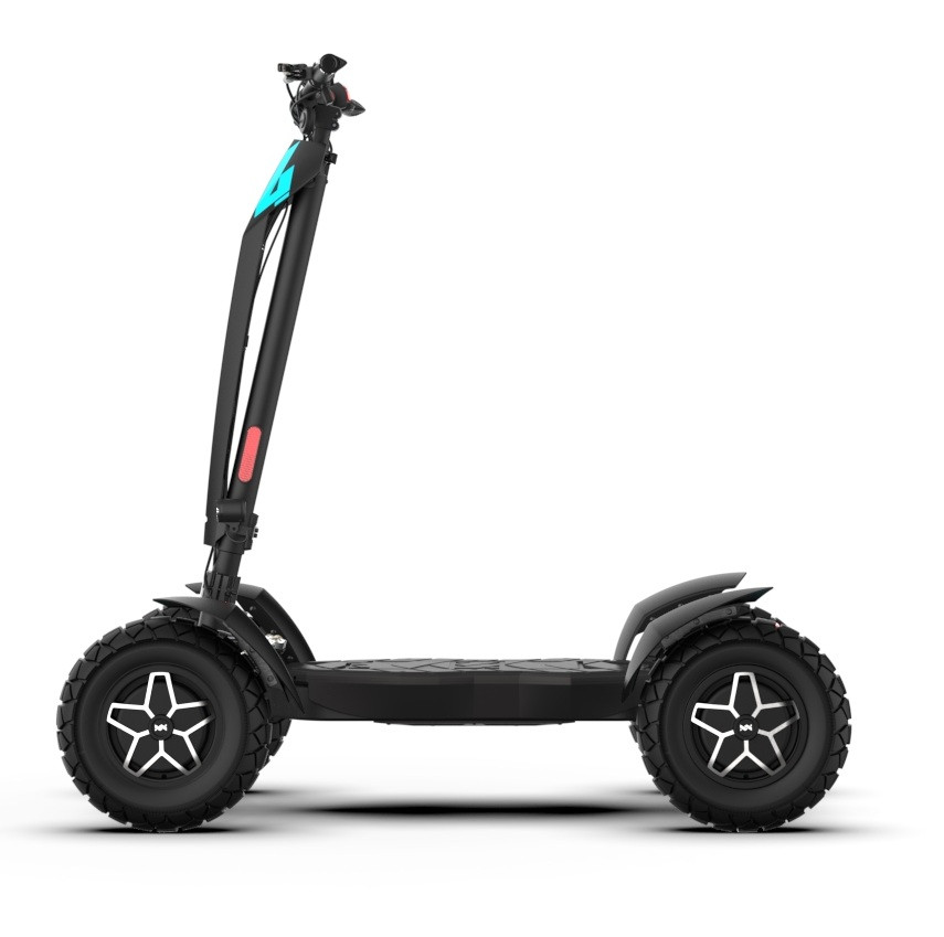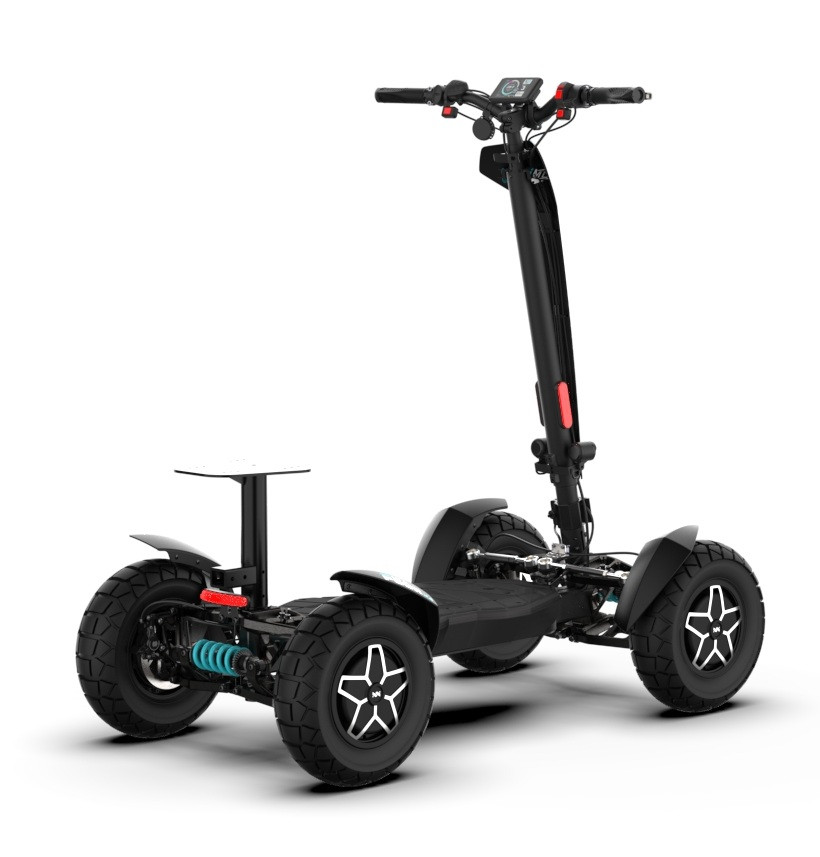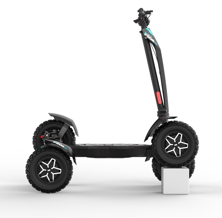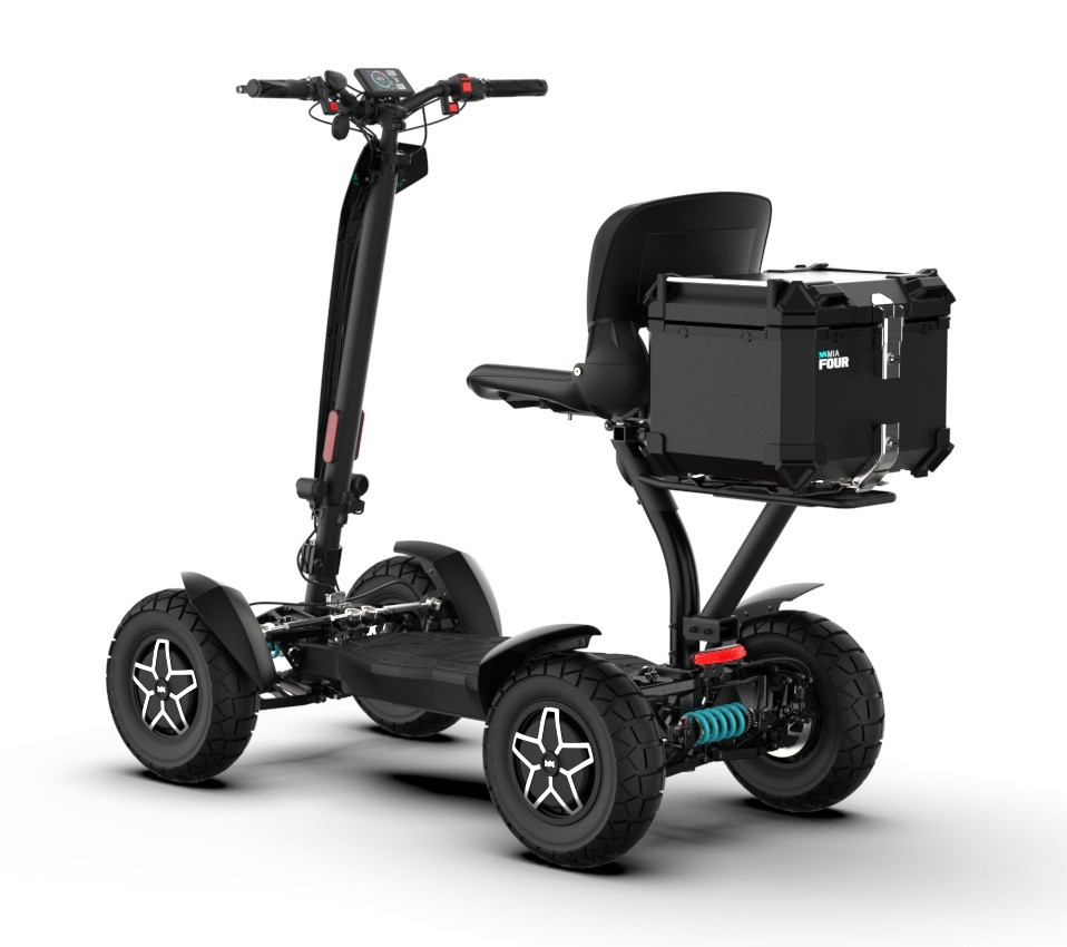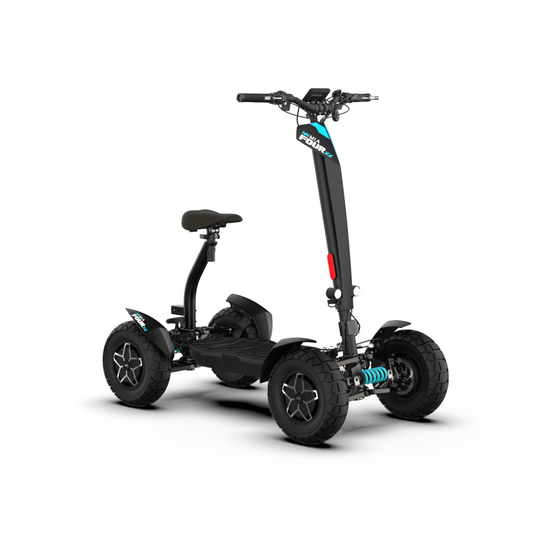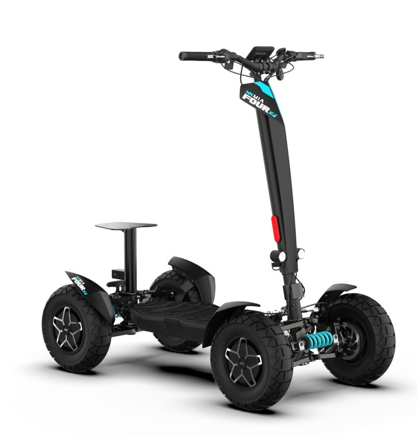 MIA Four X4 (4×4) – revoluční elektrická koloběžka s pohonem všech čtyř kol, výkonem 7200 W, dojezdem až 120 km a robustní baterií 60 V / 35 Ah. Spolehlivá, výkonná a připravená na jakýkoli terén.