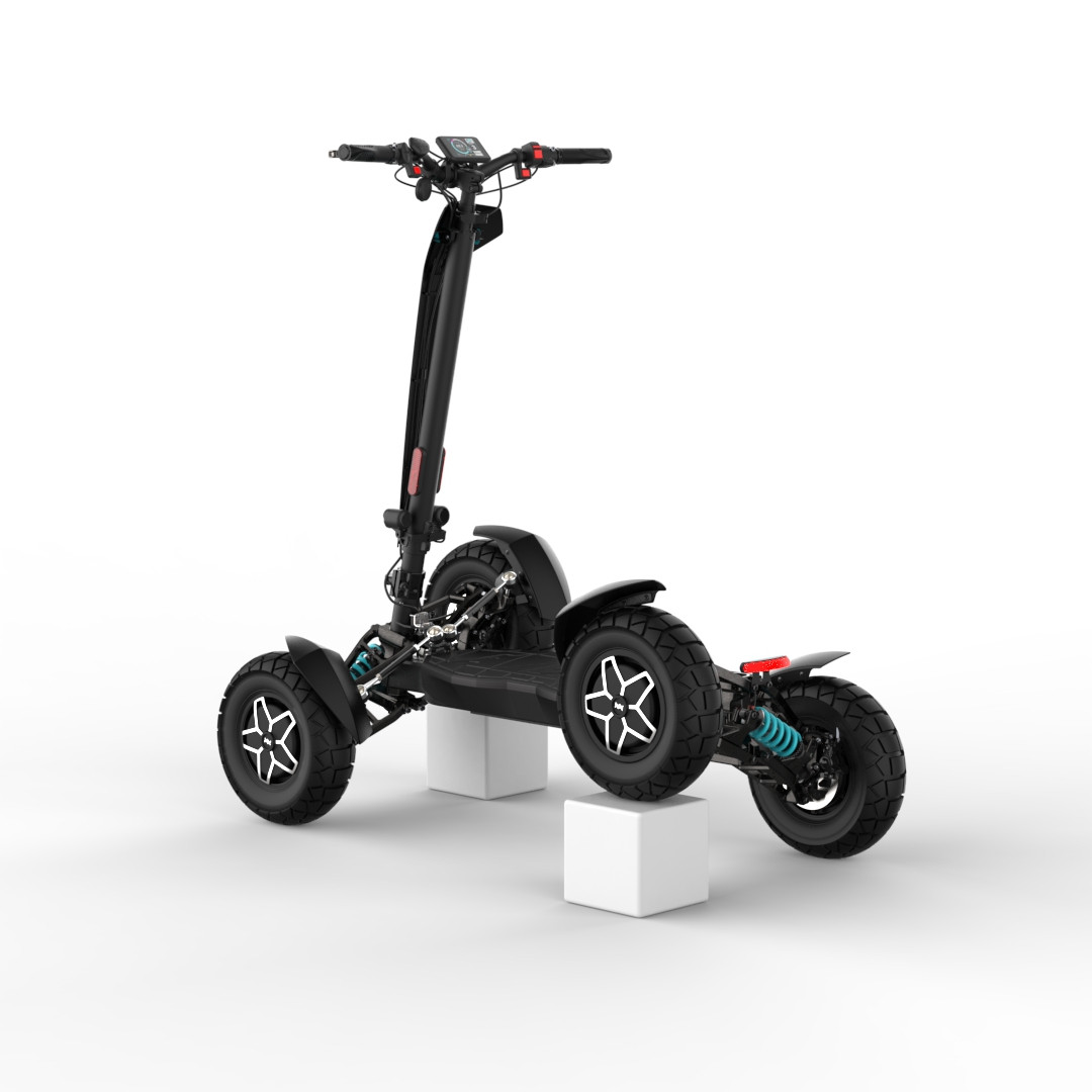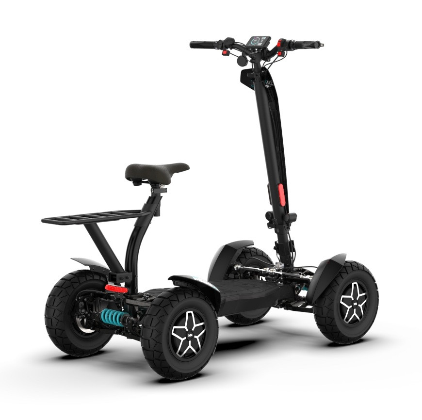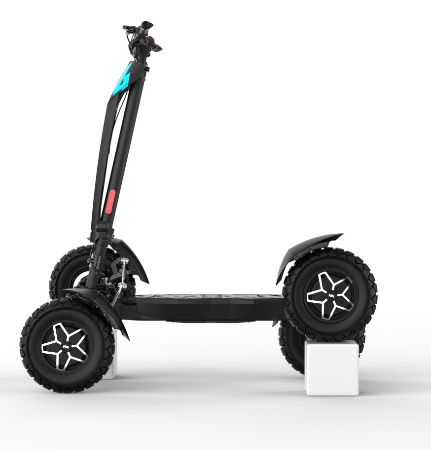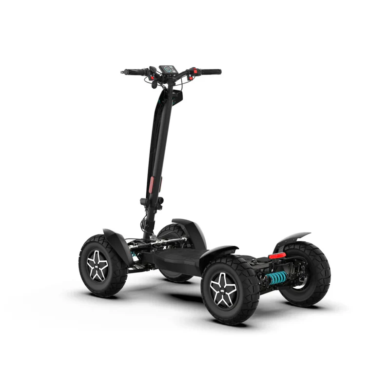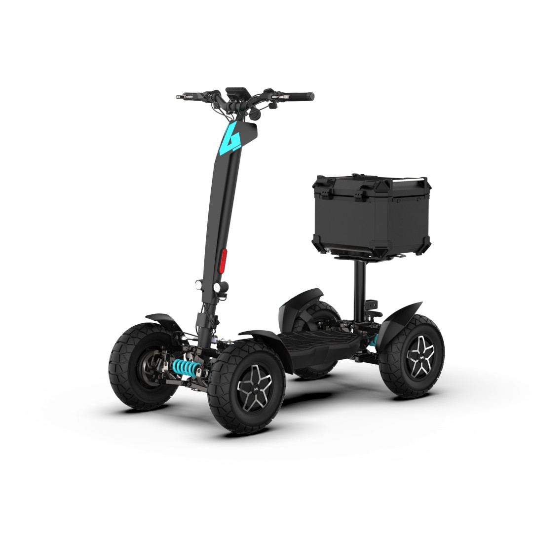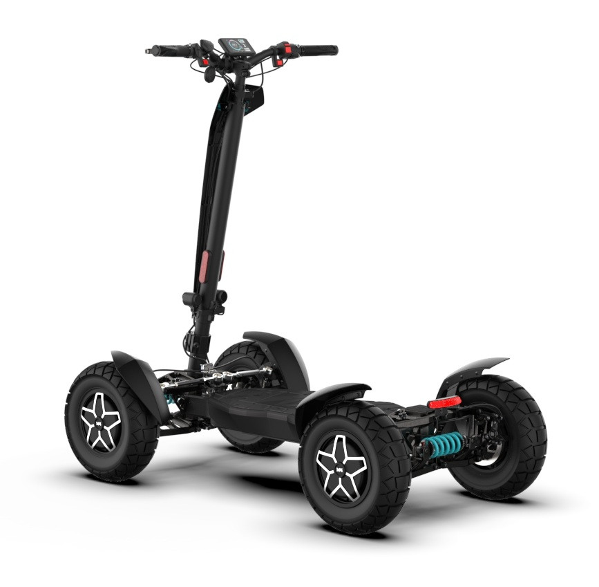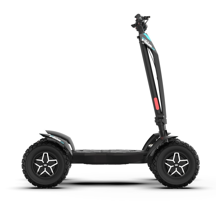 MIA Four X4 (4×4) – revoluční elektrická koloběžka s pohonem všech čtyř kol, výkonem 7200 W, dojezdem až 120 km a robustní baterií 60 V / 35 Ah. Spolehlivá, výkonná a připravená na jakýkoli terén.