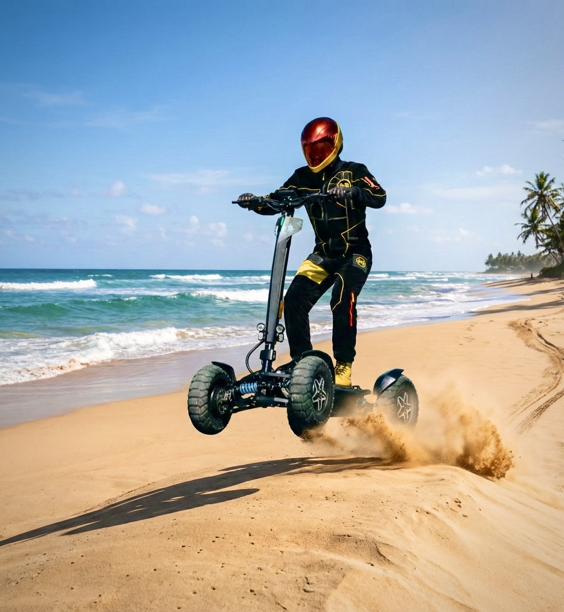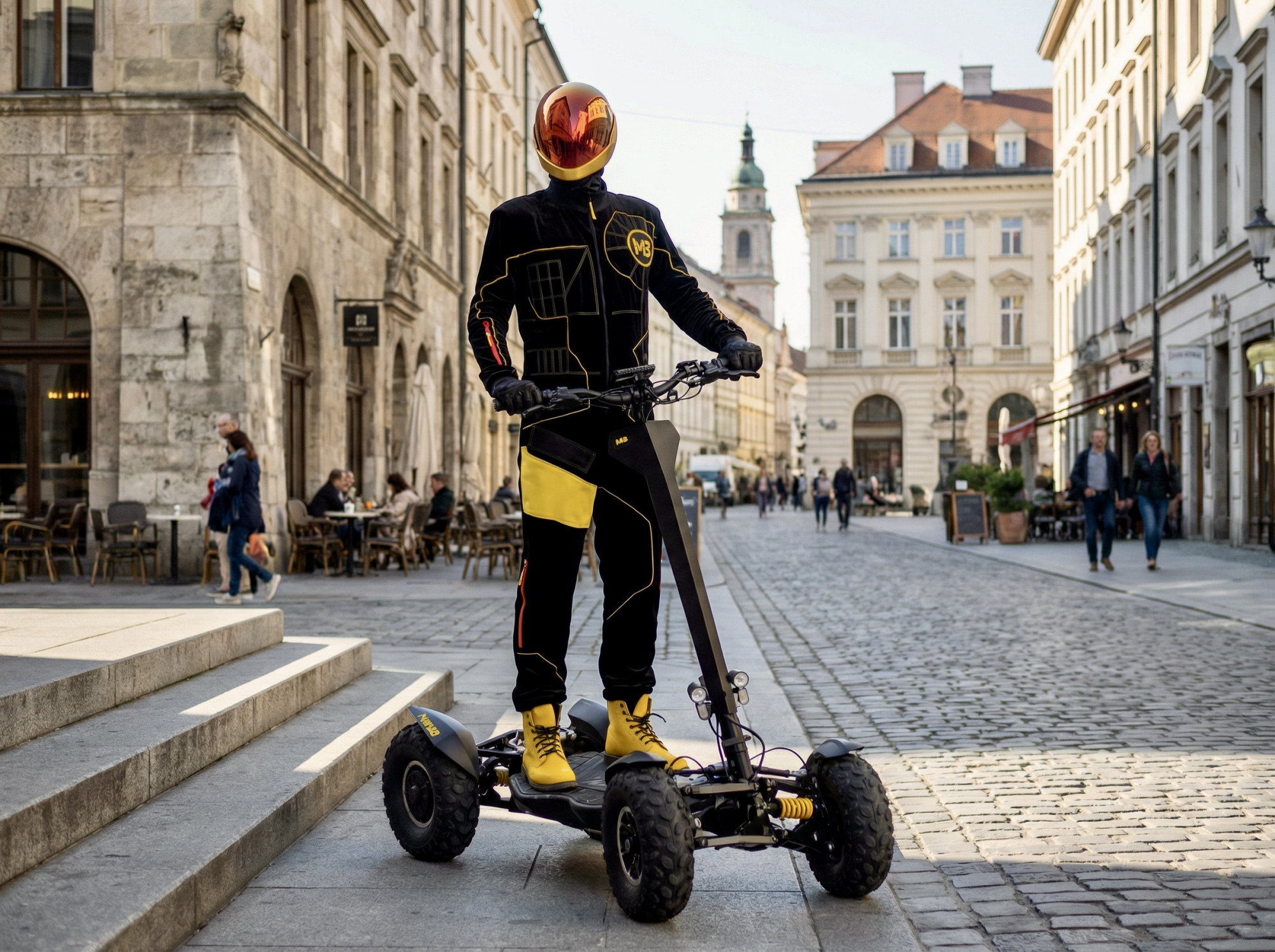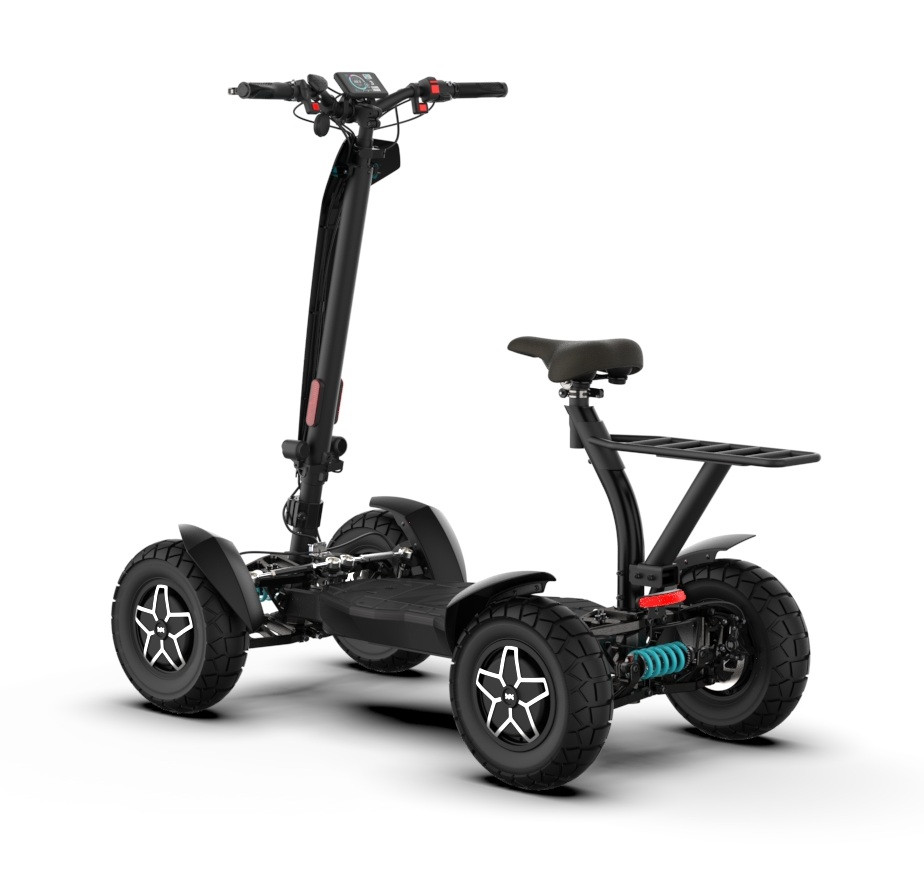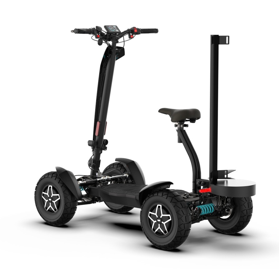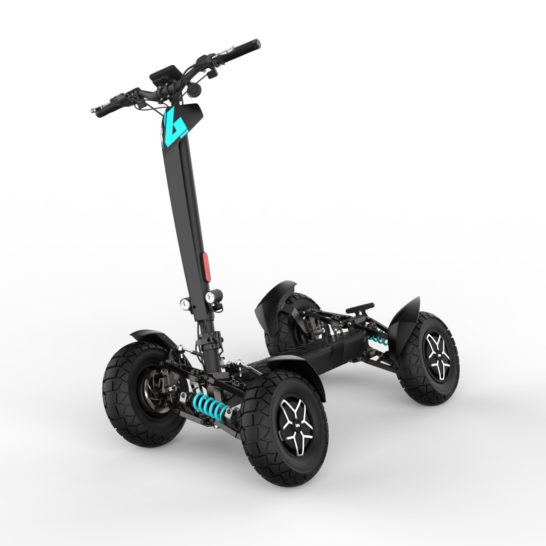 MIA Four X4 (4×4) – revoluční elektrická koloběžka s pohonem všech čtyř kol, výkonem 7200 W, dojezdem až 120 km a robustní baterií 60 V / 35 Ah. Spolehlivá, výkonná a připravená na jakýkoli terén.